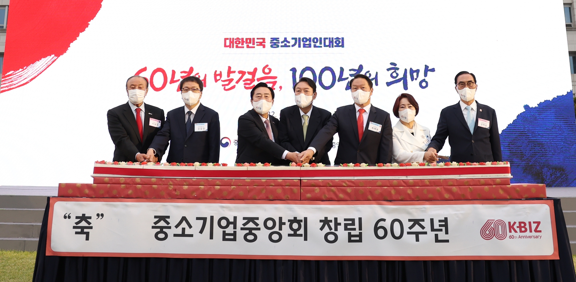 About 500 people attended the event, including heads of nine groups, including Samsung Electronics Chairman Jae-yong Lee, SK Group Chairman Chey Tae-won, and Hyundai Motor Group Chairman Chung Eui-sun, as well as officials from small and medium-sized venture companies.