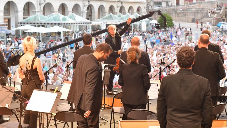 The public gathered yesterday in the Plaza de María Pita enjoyed a concert by the Galician Chamber Orchestra, which performed within the Classical Week under the baton of its director, Rogelio Groba Otero.