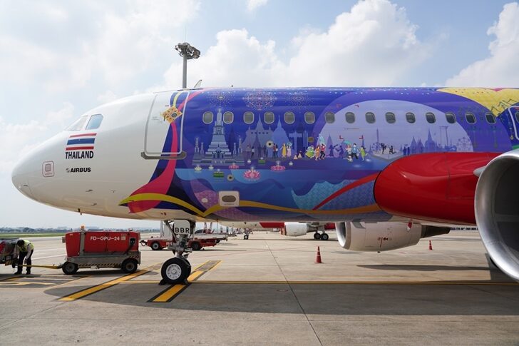This second plane has been beautifully designed both inside and outside the plane. to tell about important Thai tourism highlights such as natural tourism in the mountains, the sea, Songkran festivals Loi Krathong Festival Thai fruits and famous food in each region The aircraft is ready for service on both domestic and international routes. To publicize and stimulate Thai tourism in the future