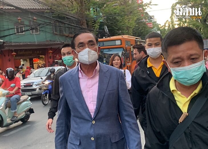 After that, Gen. Prayut walked out of Wat Leng Nei Yi, greeting people in the Yaowarat area. with the cheers of “Uncle Tu Fighting, Uncle Tu Stay” loudly continuously