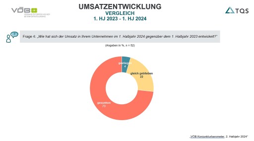 The weak economy is also affecting the number of employees: by the end of 2024, the number of employees will decrease at around half of the companies surveyed. “At the same time, our member companies strive to keep employees where possible: 75 percent of those surveyed take concrete measures in the area of employer branding and employee benefits,” says Anton Glasmaier, VÖB Managing Director.