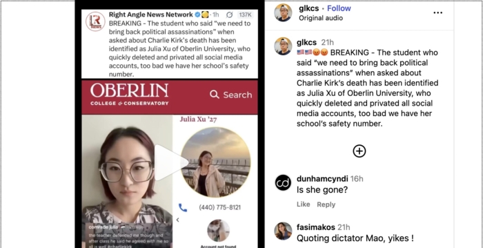 Oberlin,OH – A student at Oberlin College is facing widespread condemnation and calls for deportation after publicly expressing support for the political assassination of a prominent figure. julia Xu, a Chinese national, sparked outrage with online comments that were quickly circulated and drew sharp reactions from U.S. officials and internet users alike.
