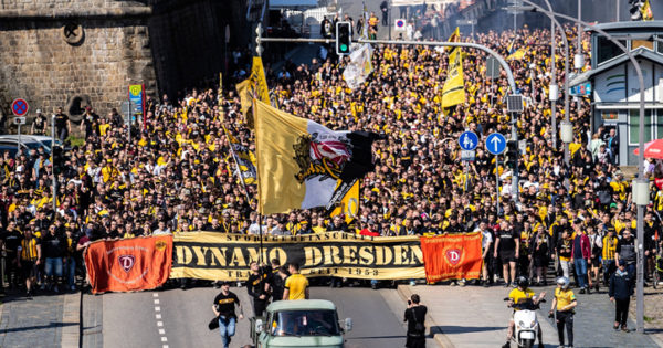 To mark the club’s 70th anniversary, Dynamo Dresden supporters marched from the old town to the stadium with a huge march of fans on Saturday morning. They were accompanied by a motorcade. Here the video.