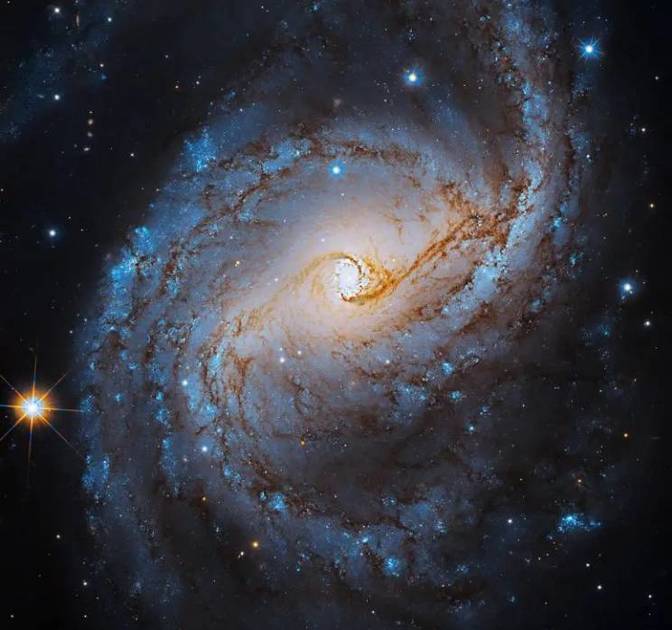 The galaxy’s bright blue spiral arms wrap around the bright white center of this starry galaxy. This new NASA Hubble Space Telescope image shows NGC 6951, a medium-sized spiral galaxy.