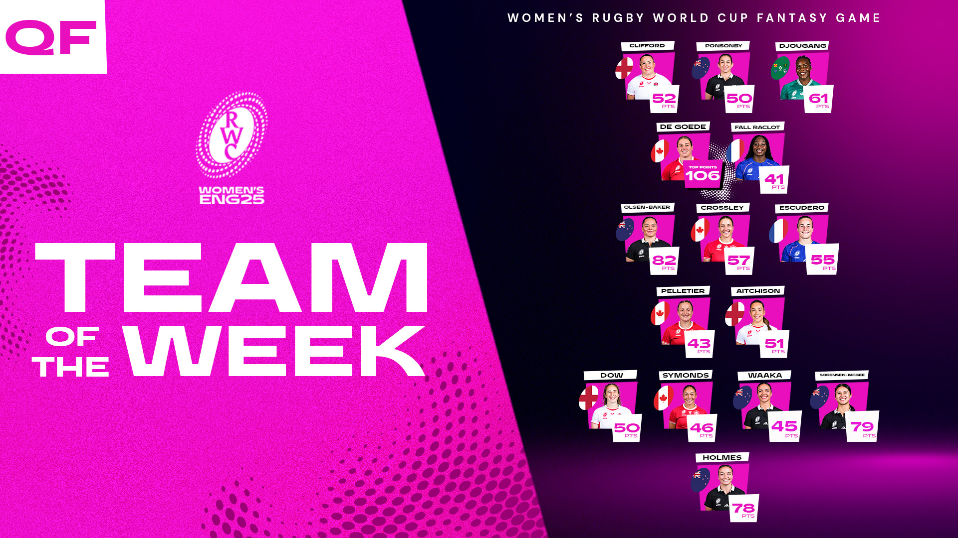 Bristol, England – september 16, 2025 – World Rugby has unveiled its Fantasy Team of the Week following a compelling round of Women’s Rugby World Cup 2025 Quarterfinal matches. The selection highlights standout performances from players across England, Canada, and New Zealand, showcasing the rising stars and consistent contributors driving the tournament forward. This team represents the pinnacle of individual achievement during the quarterfinal stage, setting the stage for highly anticipated semifinal clashes.