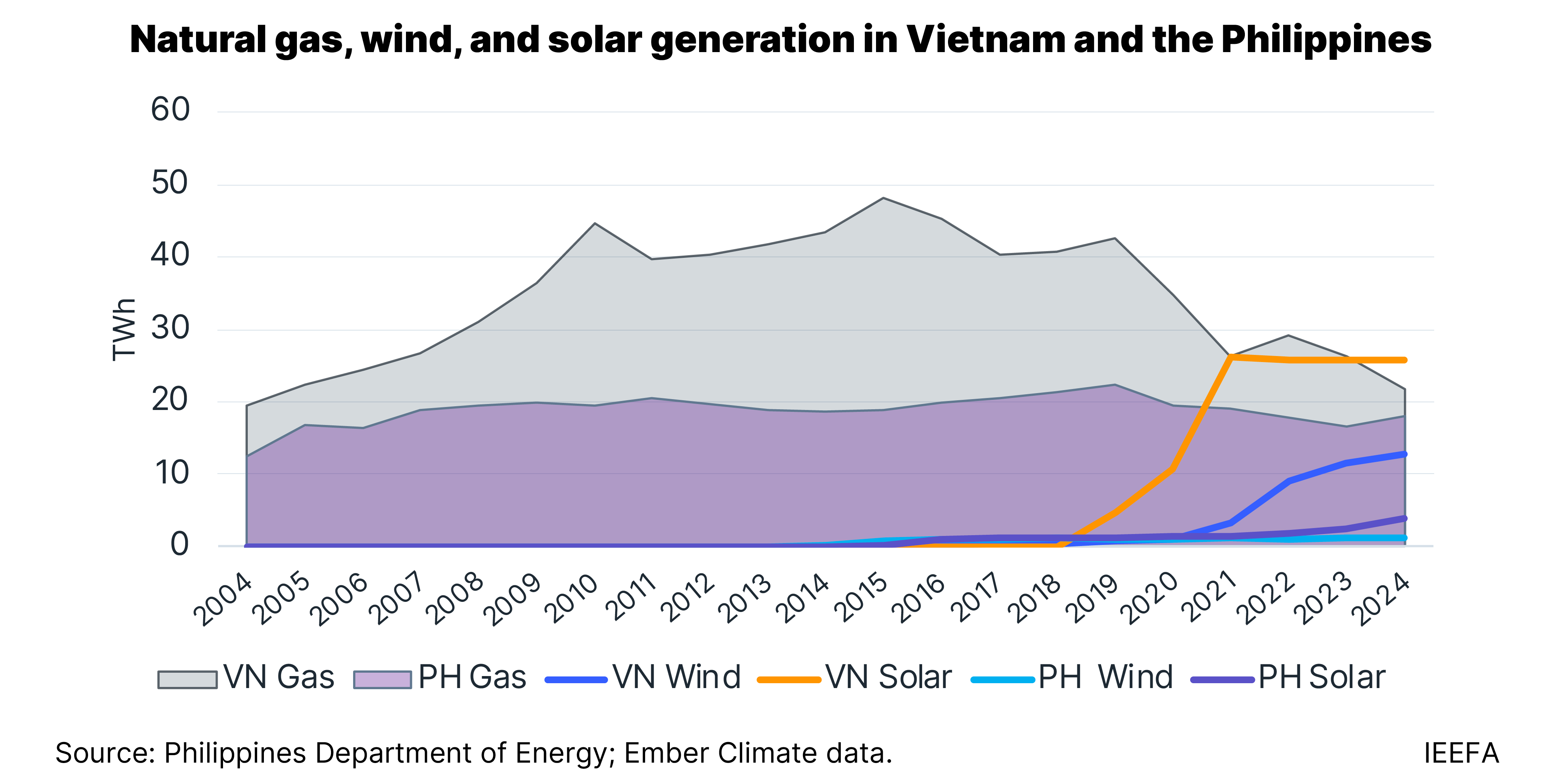 The Institute for Energy Economics and Financial Analysis (IEEFA) forecasts that the Philippines will likely not see any new liquefied natural gas (LNG) fired power plants come online this decade. In Vietnam, while two projects have tentatively secured turbine supply, they still require final contracts to achieve financial closure.