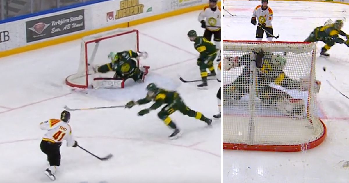 Björklöven’s goalkeeper basically looked overplayed when Greg Scott got the chance with a direct shot from close range. But Svedberg moved quickly from one post to the other, dropped the stick and saved with the inside of the shot.