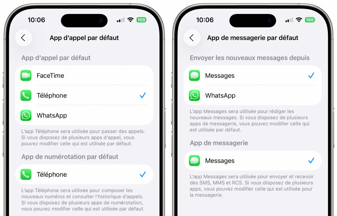 To take advantage of these capacities, European users will have to define a third -party application as a default application for calls or messaging on iOS 26. Without this configuration, the functionality will remain inactive. Note, Wi-Fi messages and calls were already accessible to third-party applications, but this new opening on iOS 26 is a notable advance.