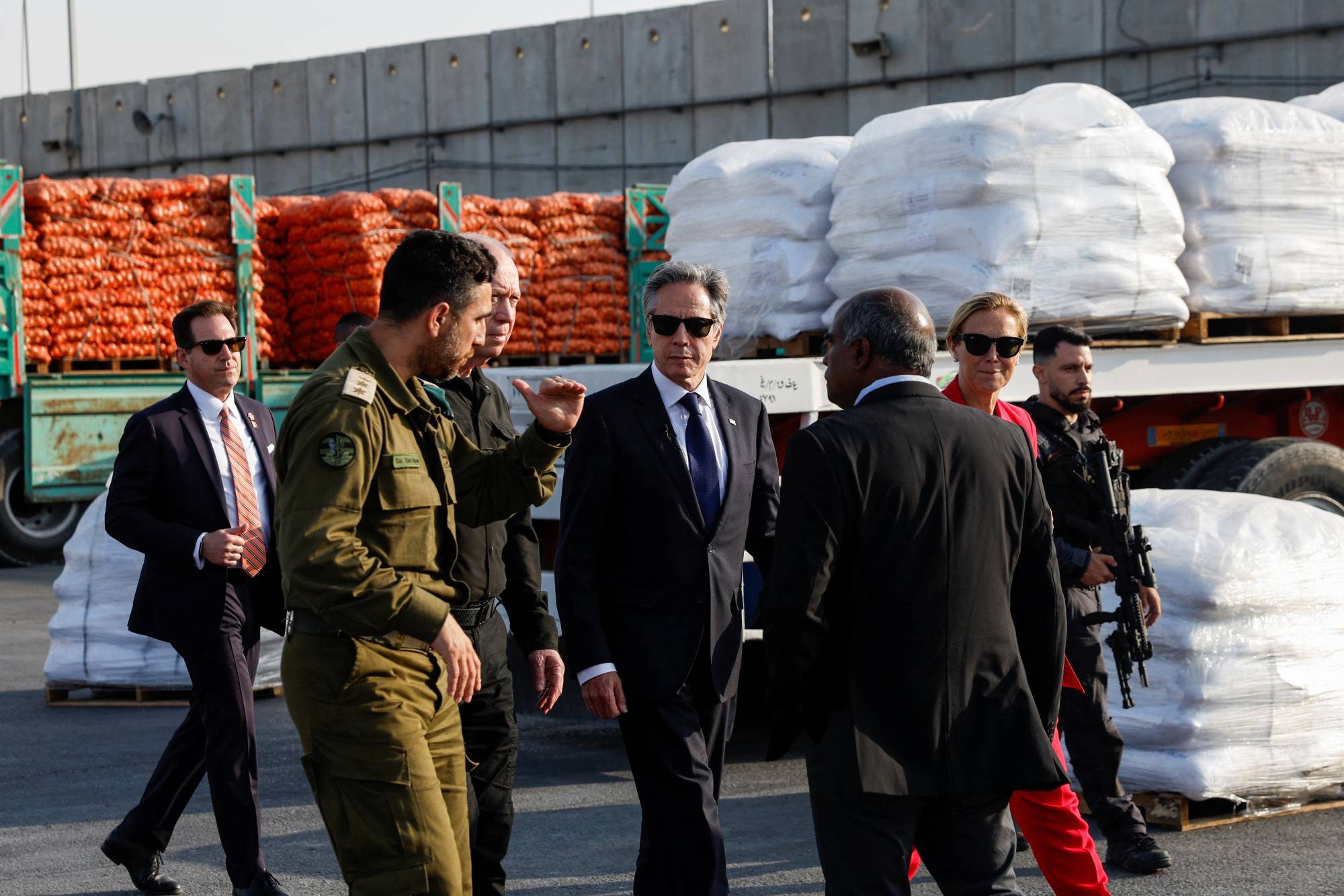 Blinken le Gallant at the Kerem Shalom border crossing (Reuters)