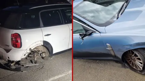 The collision occurred while Steenson was driving a white Mini Cooper. He crashed into a blue Jaguar, which was being driven by a woman taking her daughter home from a dance event. The impact caused notable damage to both vehicles, with the Mini Cooper losing a wheel and the jaguar sustaining damage to its wing mirror and a torn tyre.