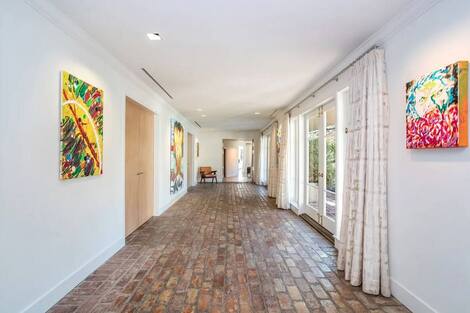 Its skylights and brick floors lend a quaint air to the home located in LA’s Brentwood neighborhood, near downtown.