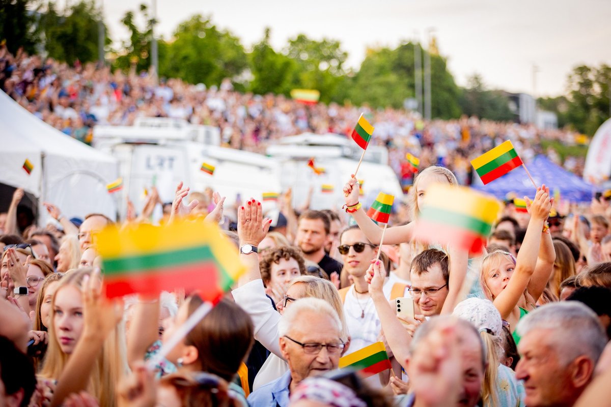 At 9 p.m., Lithuanians across the globe united to sing their national song, a tradition now in its 16th year. In Vilnius, the audience was joined by dignitaries including Vilnius City Mayor **Valdas Benkunskas**, Lithuanian President **Gitanas Nausėda**, and German President **Frank-Walter Steinmeier**, who was visiting Lithuania.