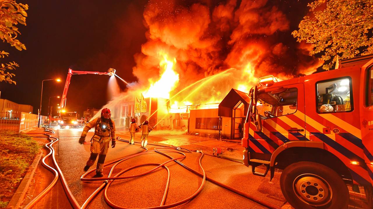 A huge fire on the De Run industrial estate in Veldhoven completely destroyed a thrift store on Saturday night. The fire spread from the thrift store to a building next door. An NL Alert was sent due to the large smoke development, a number of people in the neighborhood had to leave their homes to be sure. The demolition and subsequent extinguishing of the building will probably take all Sunday.