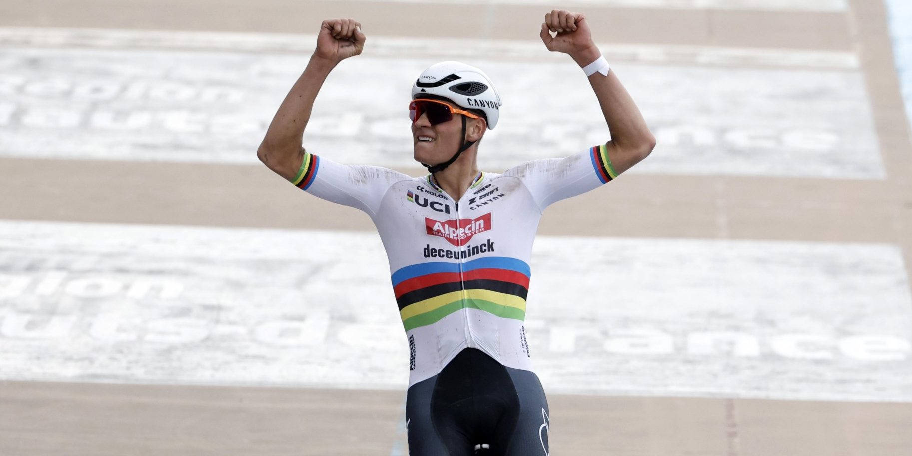 Mathieu van der Poel has won Paris-Roubaix for the second time in a row in grand style. A week after his victory in the Tour of Flanders, Alpecin-Deceuninck opened the race early, after which MVDP opted for a solo with 60 kilometers from the finish, which he completed with force majeure. This way, the Dutch world champion could cheer in his rainbow jersey on the Roubaix velodrome. Jasper Philipsen sprinted far behind to second place, Mads Pedersen finished third.