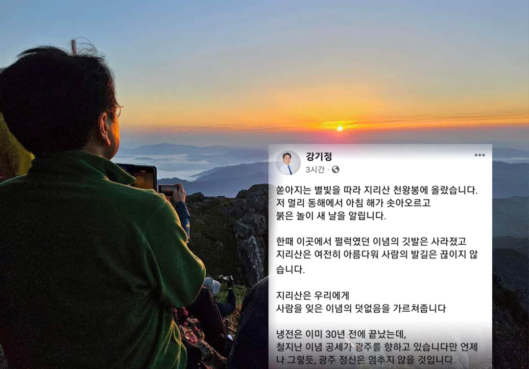 Mayor Kang said in a post on his Facebook page on the 26th, “The Cold War has already ended 30 years ago, but an outdated ideological offensive is heading toward Gwangju.” “As always, the spirit of Gwangju will not stop.”