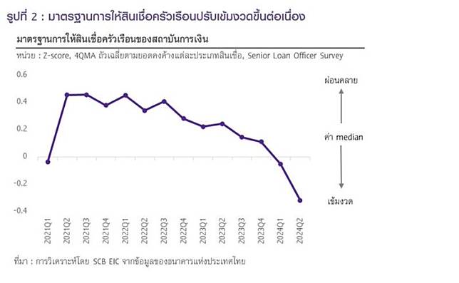 - SCB loan situation EIC assesses that, in addition to MPC’s concerns about SME business loans, the expansion of household credit will be an additional factor weighing on the Thai economy. from financial institutions’ home loan standards, which are likely to continue to tighten This is in line with the quality of household credit which has declined significantly.