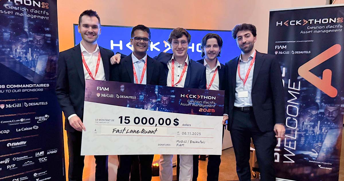 Montréal – A team including three students from HEC Montréal’s Master of Science (MSc) - Financial Engineering program achieved first place at the prestigious 2025 Hackathon, an international investment competition held in Montréal on November 5th and 6th. The victory underscores the program’s strength in quantitative finance and data-driven investment strategies.