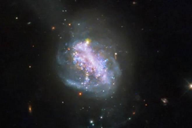 He pointed out that the turbulent structure of the galaxy, which was likely caused by the violent interactions of gas and dust during the collision, is another sign of this merger.