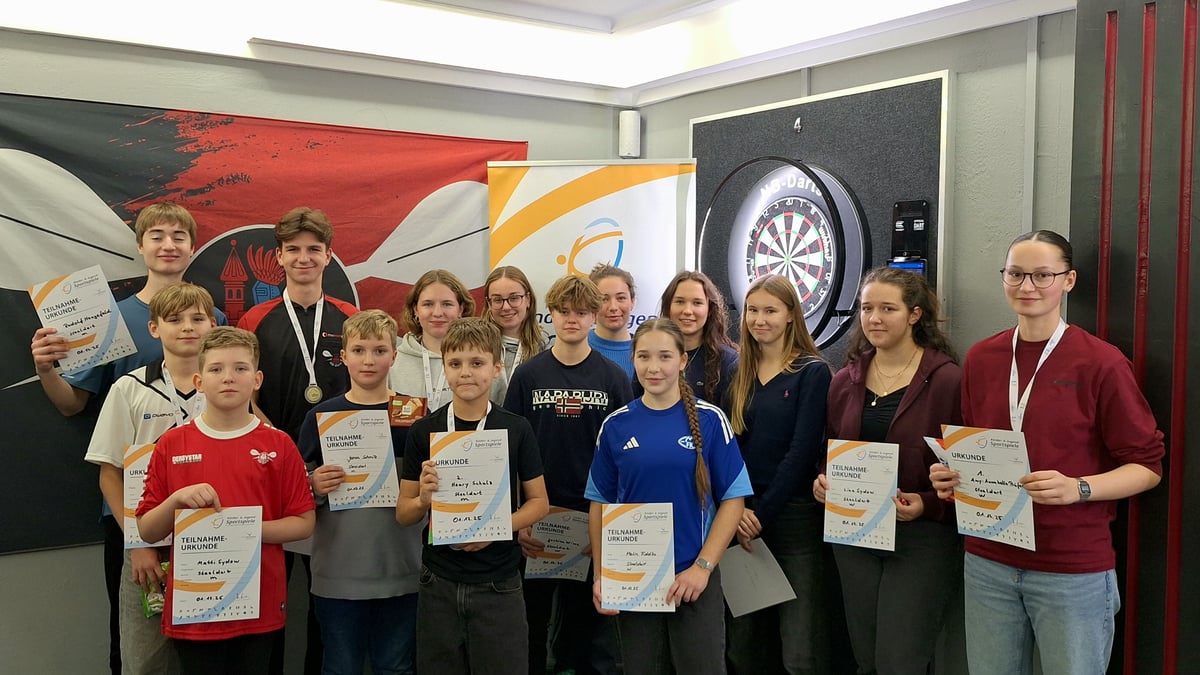 Neubrandenburg, Germany – Fifteen young athletes from Neubrandenburg and surrounding areas crowned their district champions in steel darts this weekend at the NB-Darts club building. Konstantin Karn and Amy-Annabelle Prufer emerged victorious in the 3rd district youth sports games.