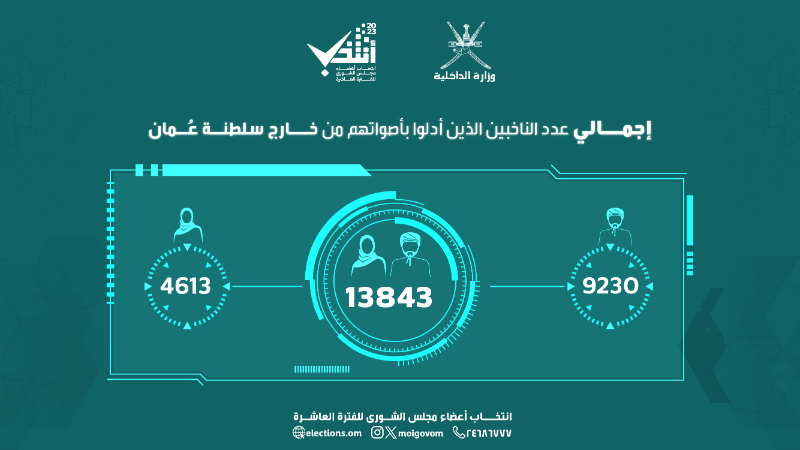 Omani citizens outside the country cast their votes in the 10th Oman Majlis Shura elections. Omani citizens outside the country exercised their right to consent through electronic voting.