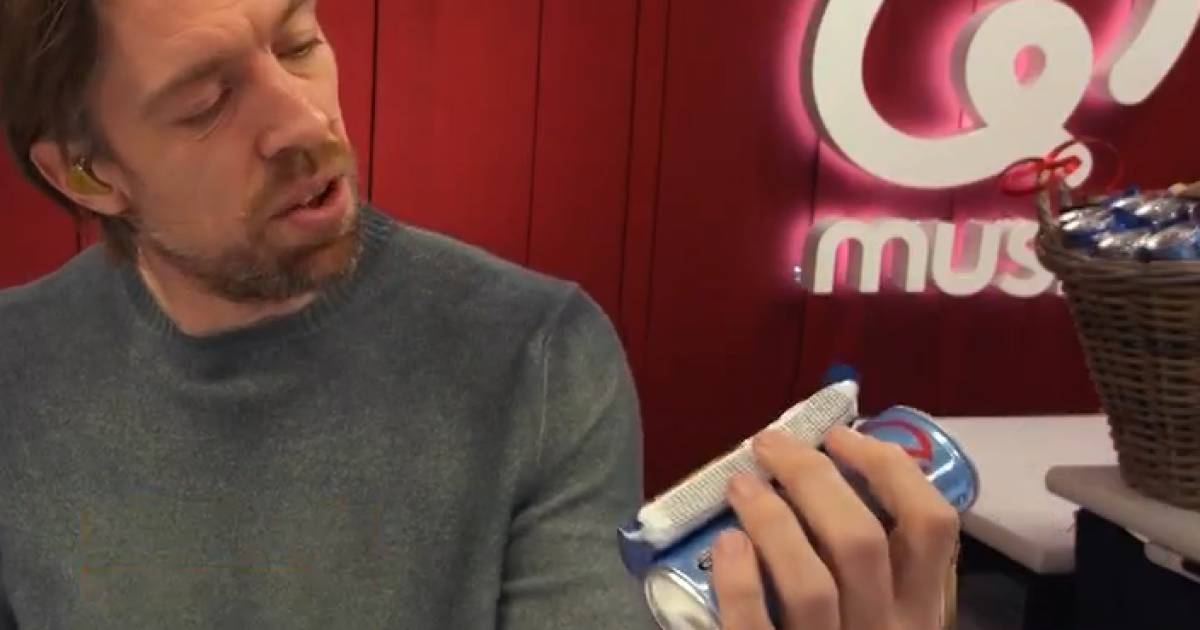 The DJ, who turned 38 yesterday, had received a basket full of 38 “typical Mattie Valk breakfasts” from his colleagues as a birthday present, or 38 times a can of energy drink and a protein bar. During a phone conversation with a listener, Mattie seemed to want to read the label of a candy bar, but forgot that he also had an open can in his hand.