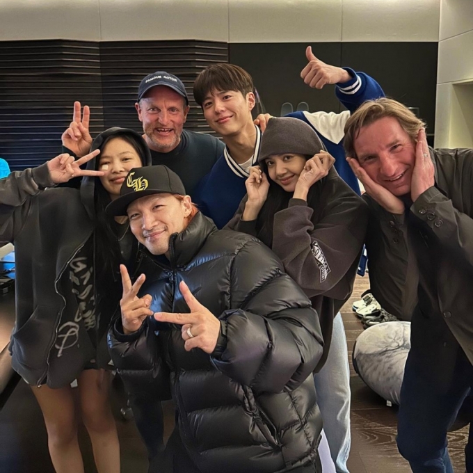 Group Black Pink Jennie and Lisa, singer Taeyang from the group Big Bang, and actor Park Bo-gum met Hollywood actor Woody Harrelson.