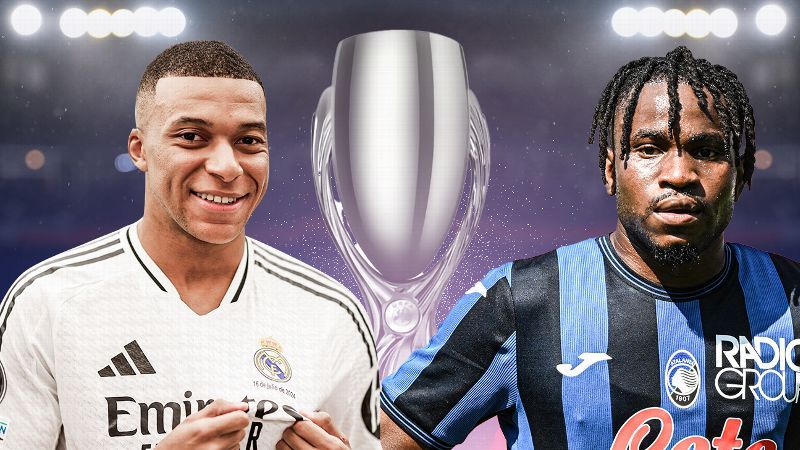 Mbappé is a starter for Real Madrid, making his Super Cup debut.