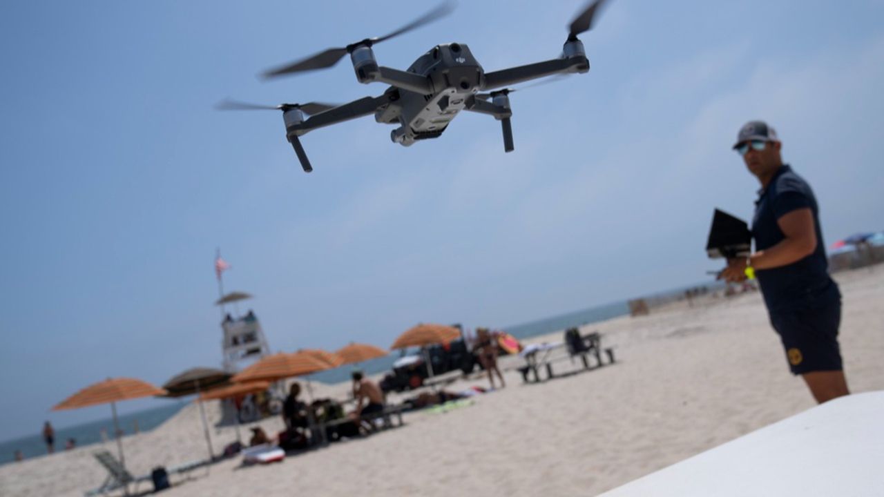 Off the coast of Long Island, drones hover above the ocean, patrolling the water for any danger that may lurk below the surface, while beachgoers are becoming more vigilant due to a recent spate of shark encounters.