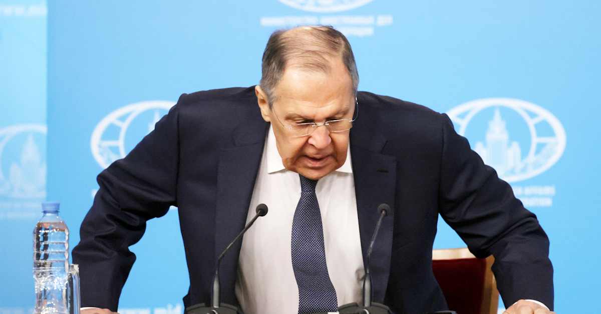 * A photo of Lavrov during the press conference is included with a caption identifying him and the photographer.