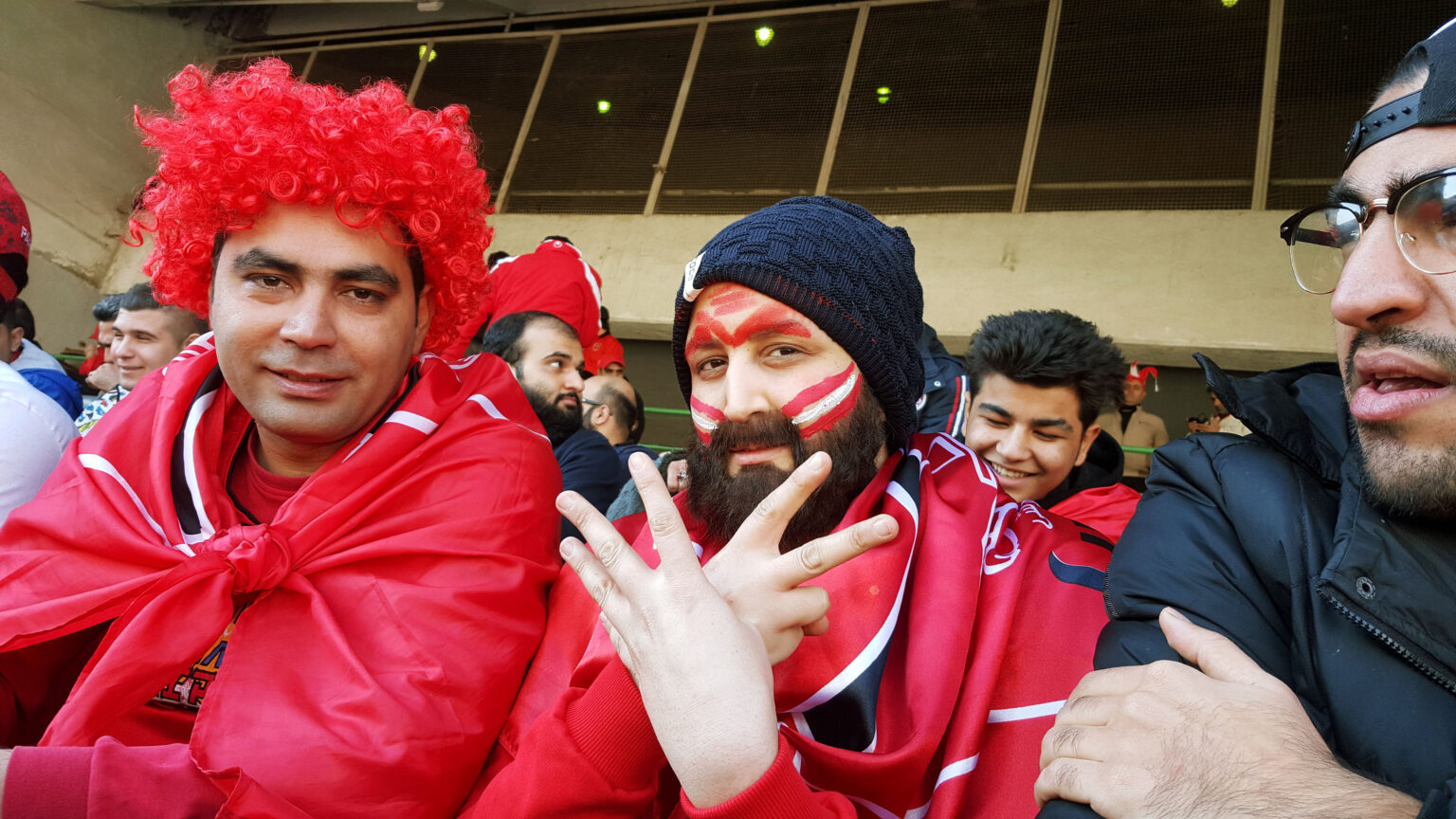 Dressed in wide trousers, a plain black T-shirt and an inconspicuous shirt, a small group of men walk towards the Azadi Stadium in Tehran. It’s match day and thousands of fans flock towards the sports complex to cheer on Persepolis FC in one of the most important matches of the year. The atmosphere is exuberant and a little heated – there is a certain nervousness in the air. This also applies to the person with the simple, baggy clothes and the moustache, even if the reasons are different. On closer inspection, it quickly becomes apparent that the beard is fake, the clothes look like a costume and the face painting only serves as a distraction.