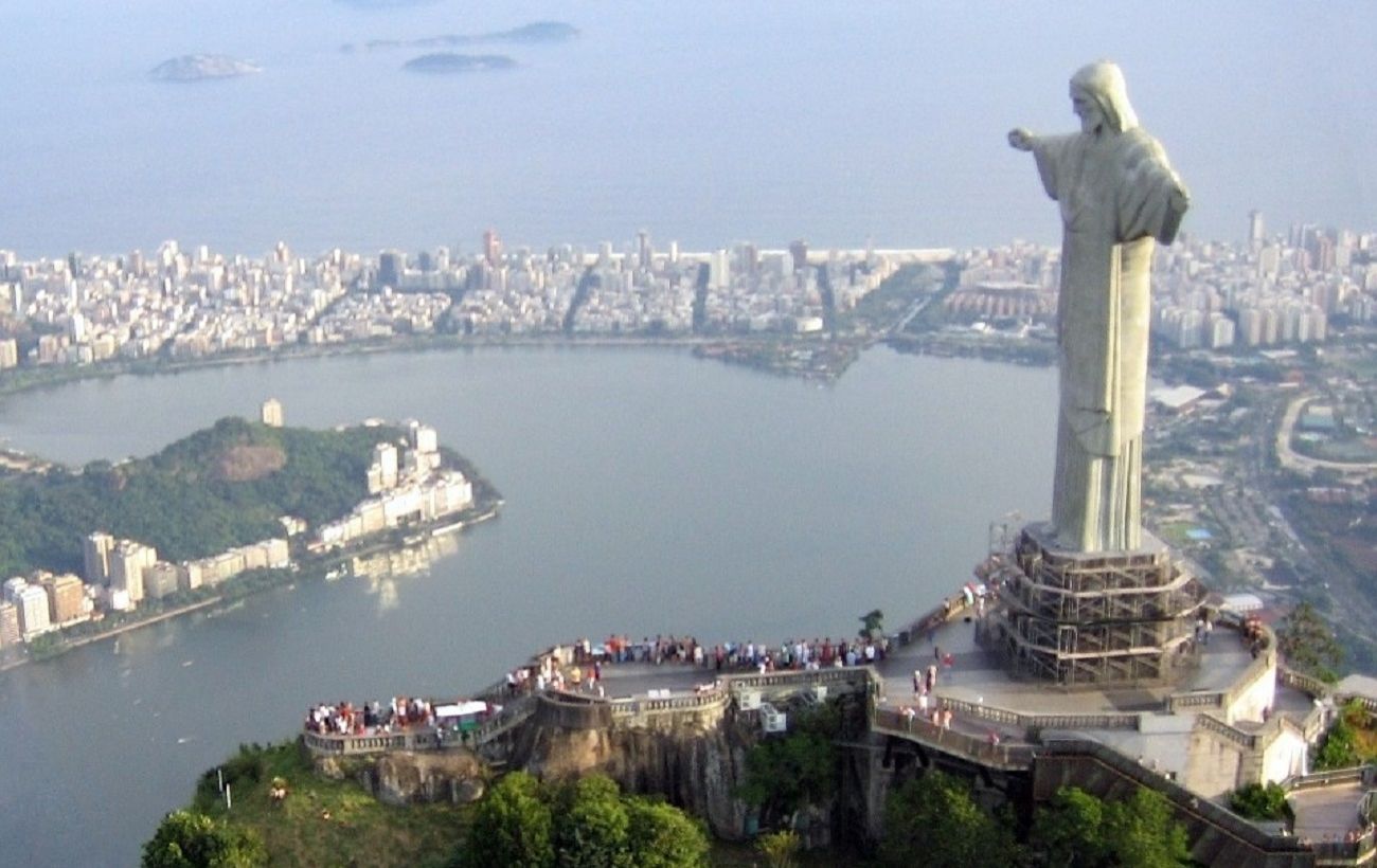 “Christ the Redeemer” – a statue of Jesus Christ in Rio de Janeiro, Brazil. The monument has a size of 39.6 m in height (an arm span of 28 meters), weighs 1145 tons and is located on top of the 200-meter Corcovada mountain in the Tijuca National Park, within the city.