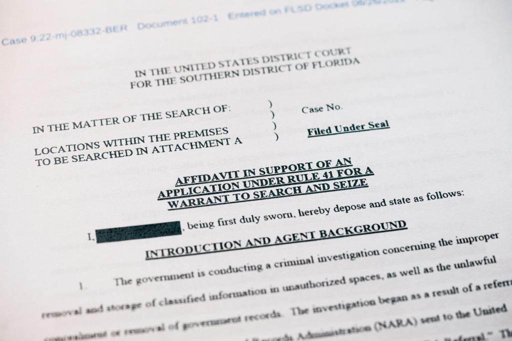 This is part of the written testimony submitted to the court when the FBI applied to search the Mar-a-Lago estate, the residence of former President Trump, taken on August 26, 2022.Photo by Xinhua News Agency reporter Liu Jie