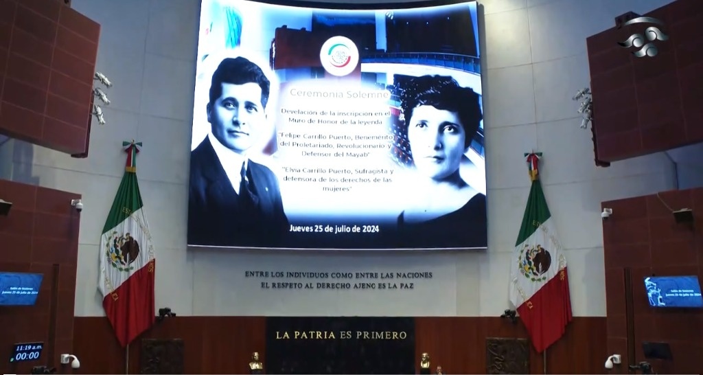 Two new inscriptions had been inscribed yesterday on the Wall of Honor of the Senate of the Republic: “Felipe Carrillo Puerto, Distinguished Proletarian, Revolutionary and Defender of the Mayab” and “Elvia Carrillo Puerto, Suffragette and Defender of Ladies’s Rights,” throughout a solemn ceremony headed by the president of that chamber, Ana Lilia Rivera, and with the presence of the governor of Yucatán, Joaquín Díaz Mena, and relations of the honored figures.