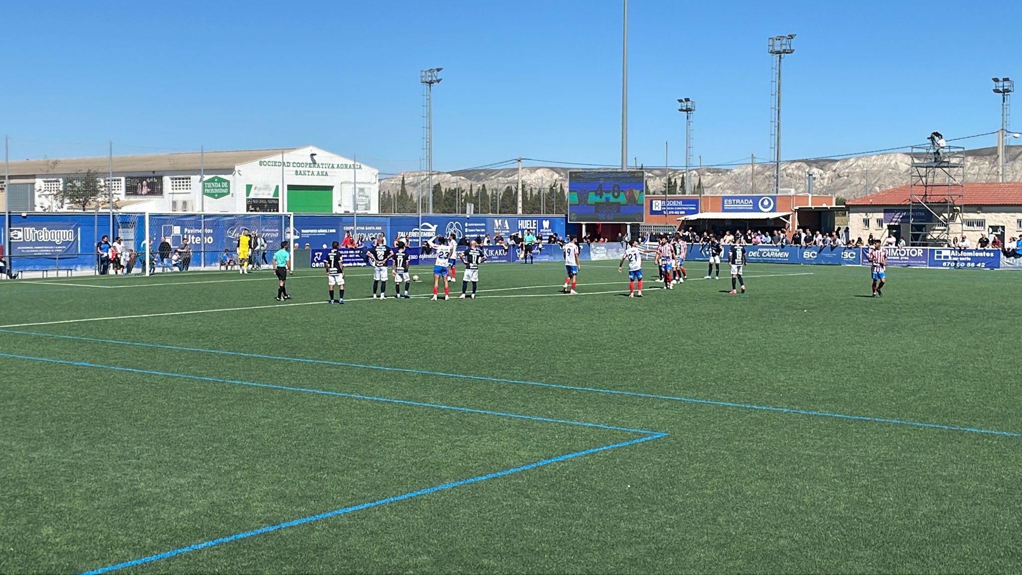 The game changed after the 32nd minute, when Utebo took control of the scoreboard. Isaac González scored the first goal for his team, followed by Roig, who scored twice in succession, in the 39th and 42nd minutes, extending the home team’s lead. The fourth goal came just before half-time, when Diego Suárez converted a penalty after a foul committed by goalkeeper Arnau Fábrega on Isaac González. The first half ended with a resounding 4-0 in favour of Utebo.