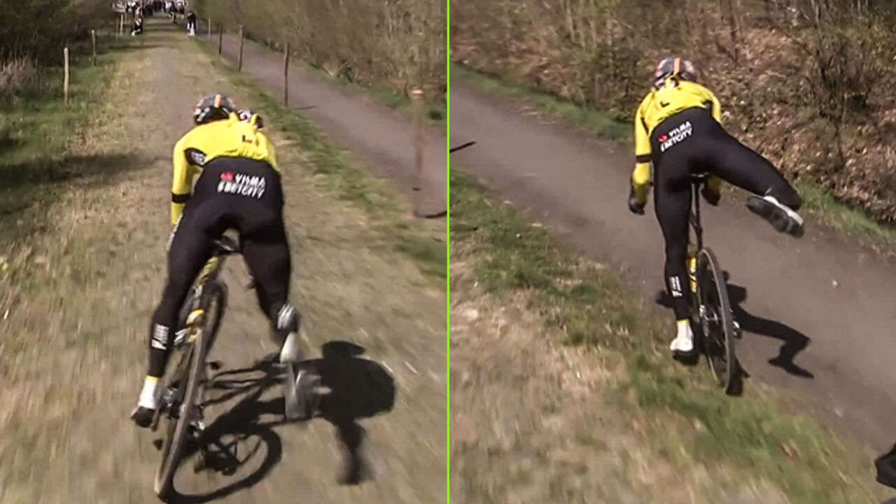 The incident occurred as Van Aert, riding at speed, suffered a flat tire on the exit of the Forest of Arenberg. The Belgian star, closely followed by support vehicles and cameramen, narrowly avoided a crash, managing to unclip his right foot just in time.