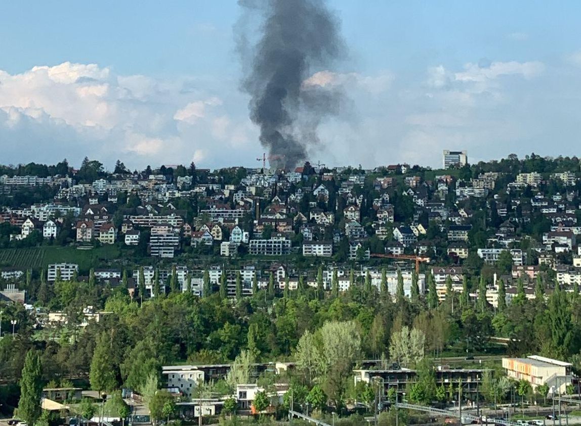 Dense clouds of black smoke over the Hönggerberg.